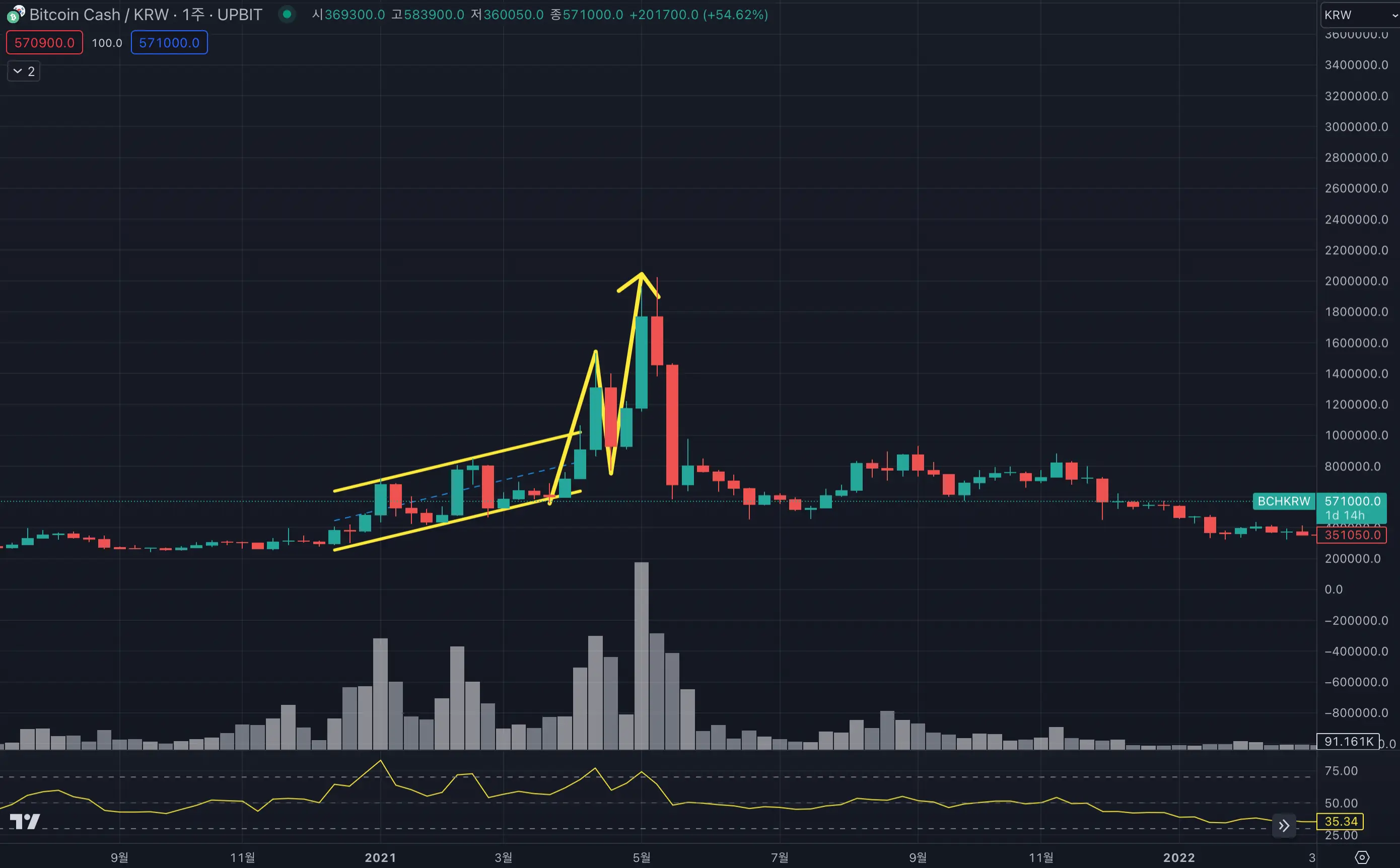 이는 비트코인 캐시의 경우도 마찬가지이며, 이 코인이 미래에 가치가 있다고 하여 불장의 끝에서도 붙잡고 있어서는 안 됩니다. 불장이 끝나면 반드시 정리하시길 바랍니다.
