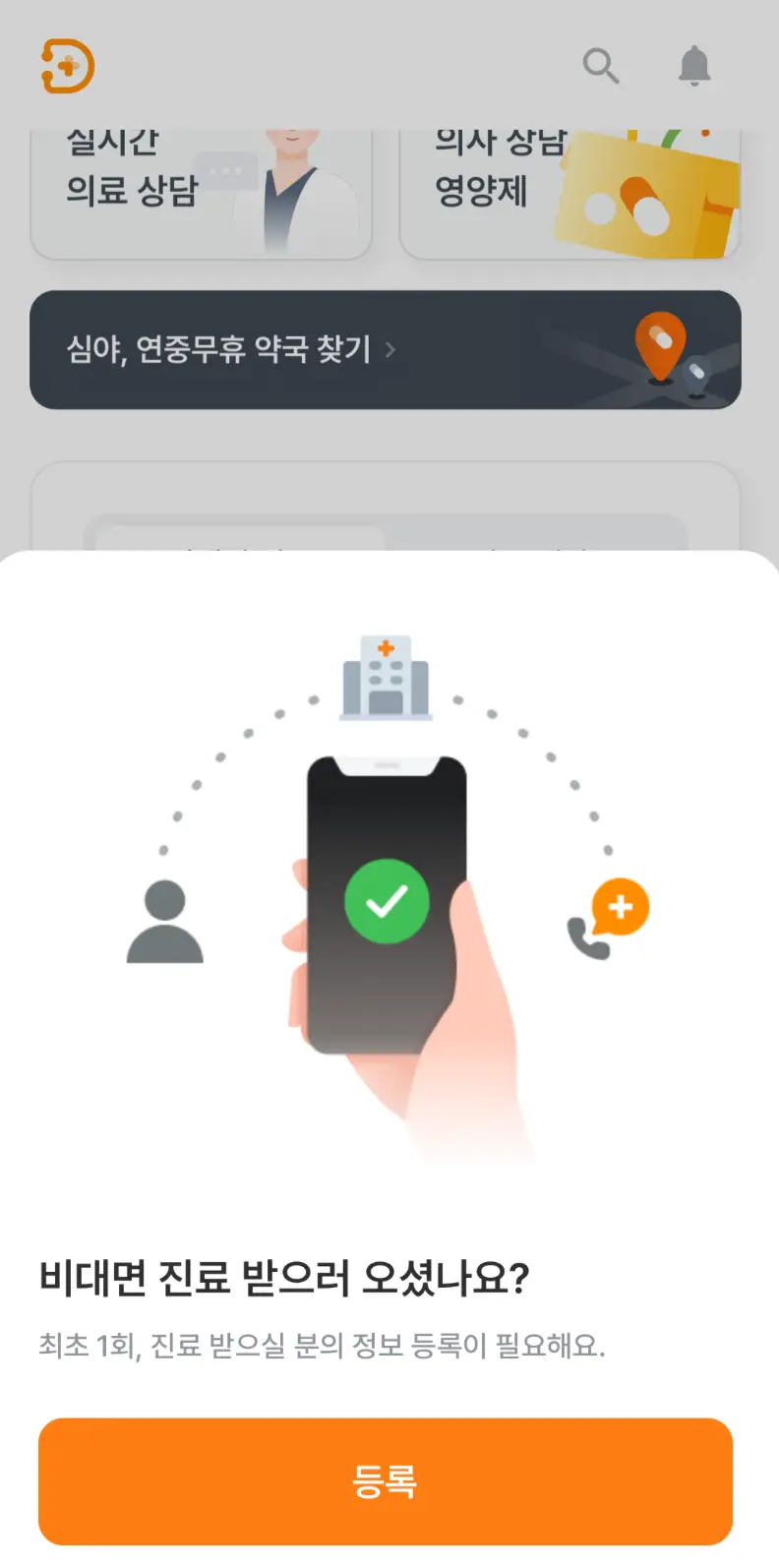 ① 어플을 다운로드한 후, 비대면 진료를 위해 정보등록을 해주세요.
