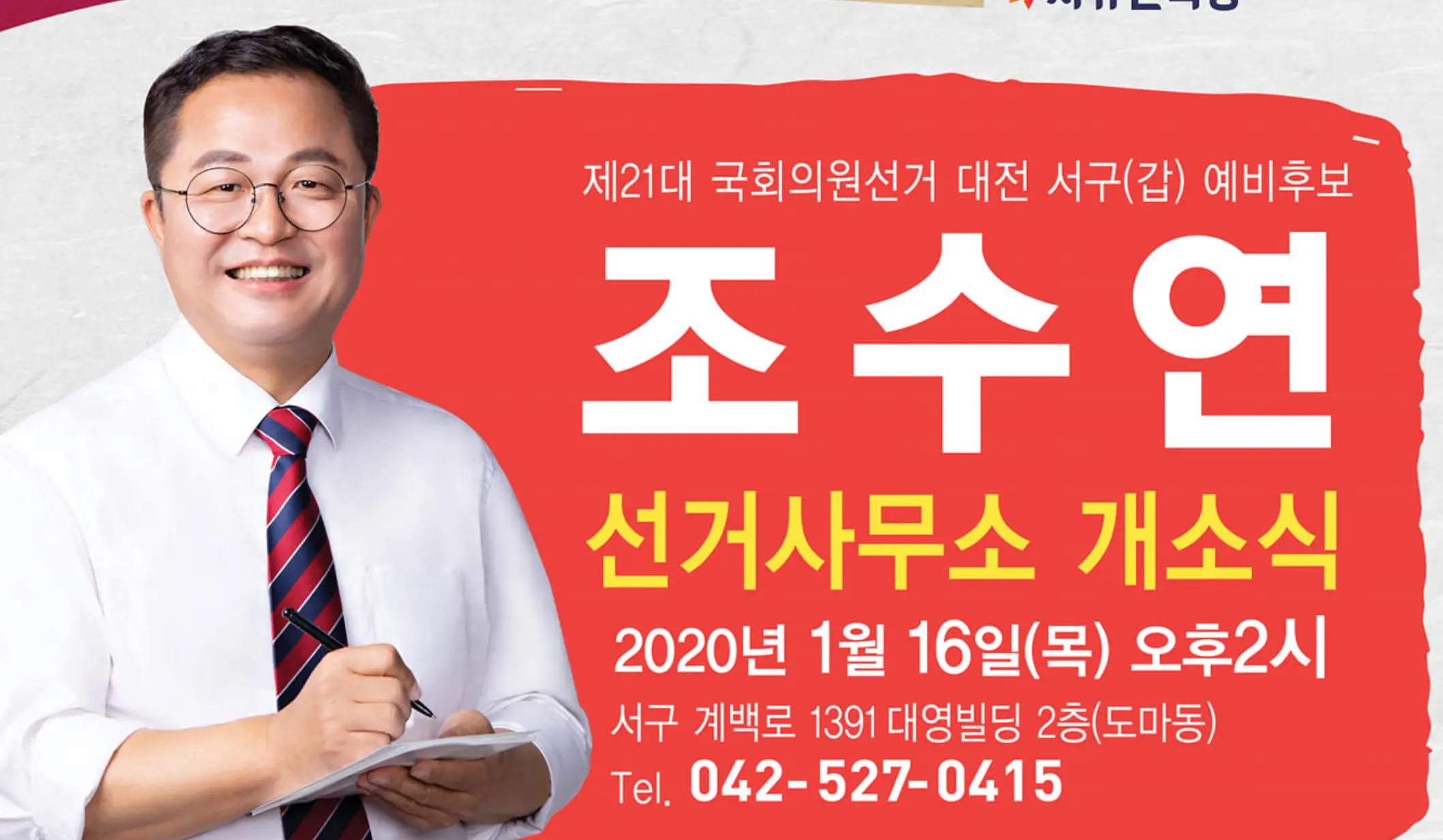 조수연은 제38회 사법시험을 합격한 변호사 출신 국회의원 후보로 대전 서구갑으로 출마했습니다. 그는 서구갑 지역에서 오랜기간 생활해 왔으며, 24년간 민주당이 집권해 온 대전 서구갑에서 젊은 패기로 "이번엔 국민의 힘에게 기회를 달라"며 자신감 있는 모습을 보여줬습니다.